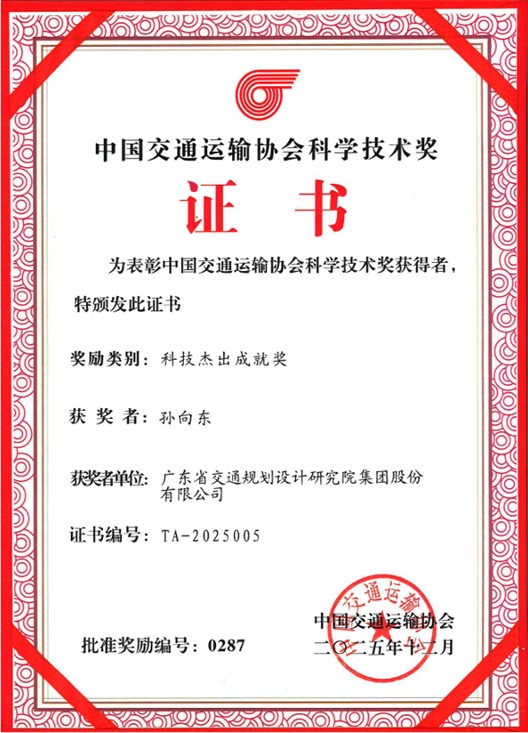近日,经中国交通运输协会严格评审、公示及审定,公司总工程师孙向东凭借在桥梁工程领域数十年深耕积淀与突出技术成就,荣获2025年度中国交通运输协会科学技术奖(科技杰出成就奖)